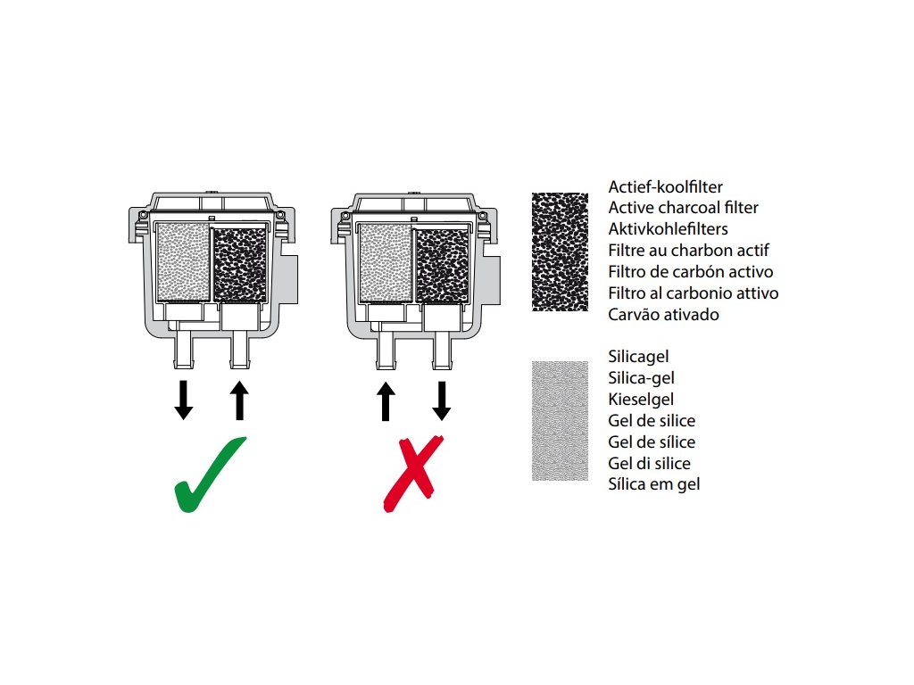 Každá nádrž na odpadní vodu vyžaduje odvzdušňovací potrubí, kterým mohou unikat nepříjemné pachy. Tomu lze zabránit instalací pachového filtru VETUS do odvzdušňovacího potrubí. Filtr lze velmi snadno nainstalovat.