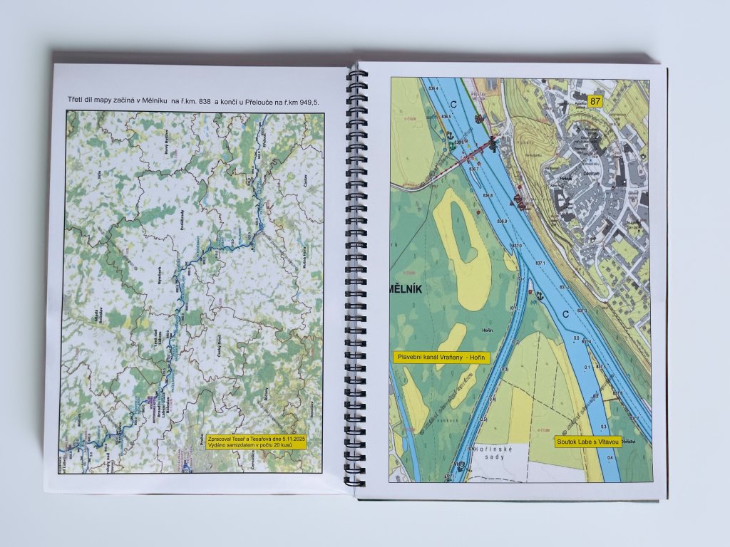 Třetí díl mapy začíná v Mělníku nad soutokem Labe s Vltavou na ř. km 838 a končí u Přelouče na ř. km 949,5.