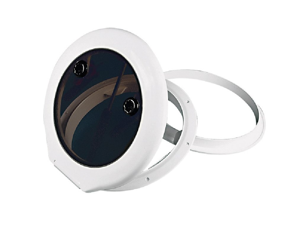 Je bílé kulaté okénko s tlustým rámem vyrobeným z UV odolného ASA, který je odolný vůči poškození a chemickým rozpouštědlům. Má UV odolné plexisklové okénko o tloušťce 8 mm, které může zůstat otevřené. Určeno pro venkovní použití. Lze montovat horizontálně i vertikálně. Toto okénko je upevněno skrytými šrouby pro diskrétní vzhled. Pryžové těsnění EPDM zajišťuje odolnost vůči vodě.
