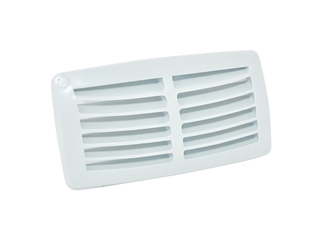 Ventilační mřížka, odolná vůči UV záření i slané vodě. Součástí balení jsou krytky děr šroubů.