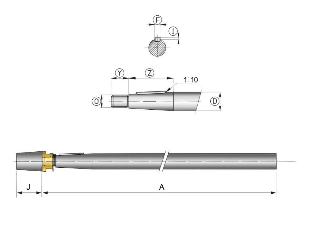 Tato hřídel je standardně obrobena na kužel 1:10 a drážkou na pero. Dodává se s perem a vrtulovou maticí se zinkovou anodou. Rozměry kužele a drážky jsou v souladu s normou ISO 4566.